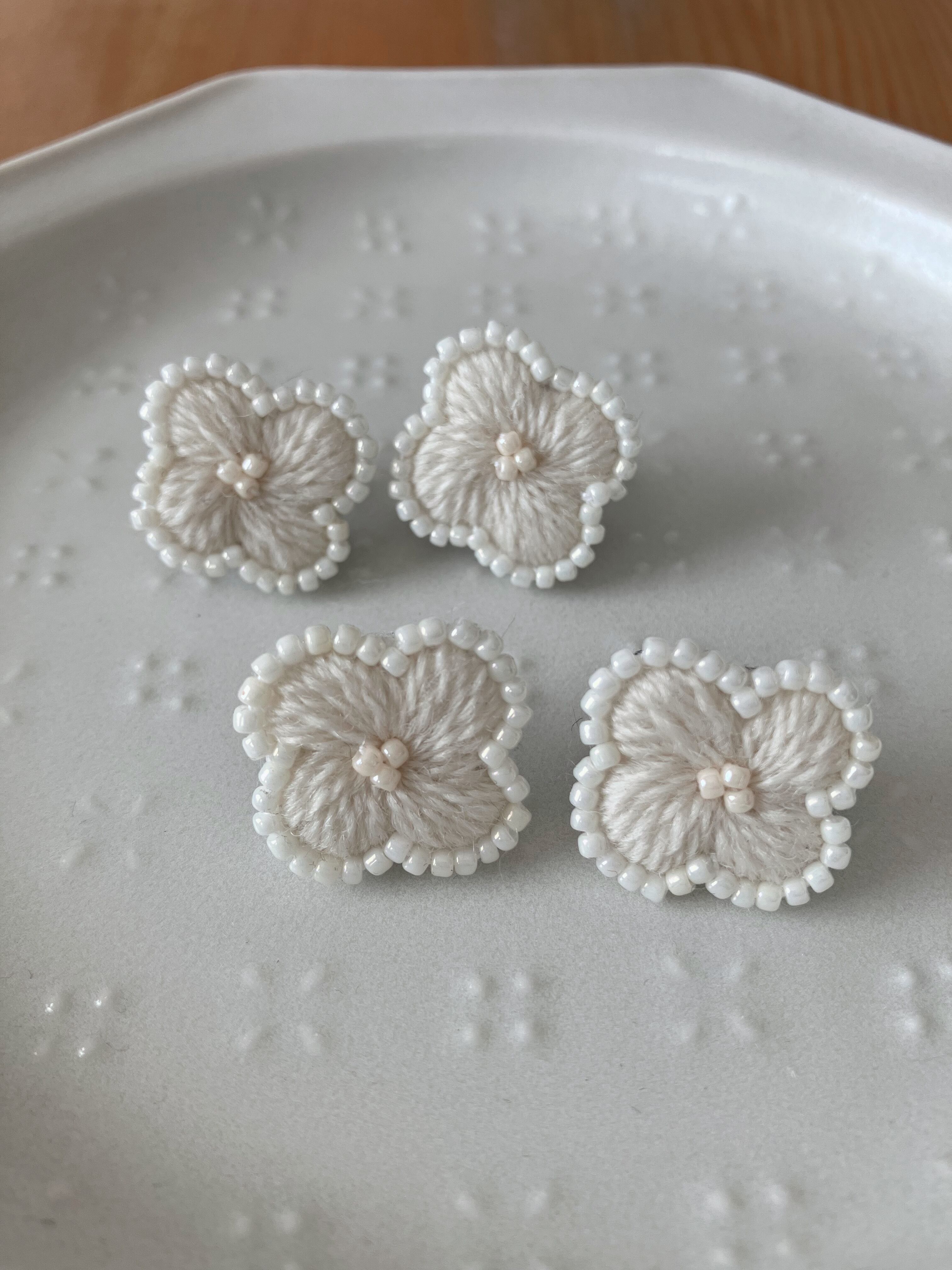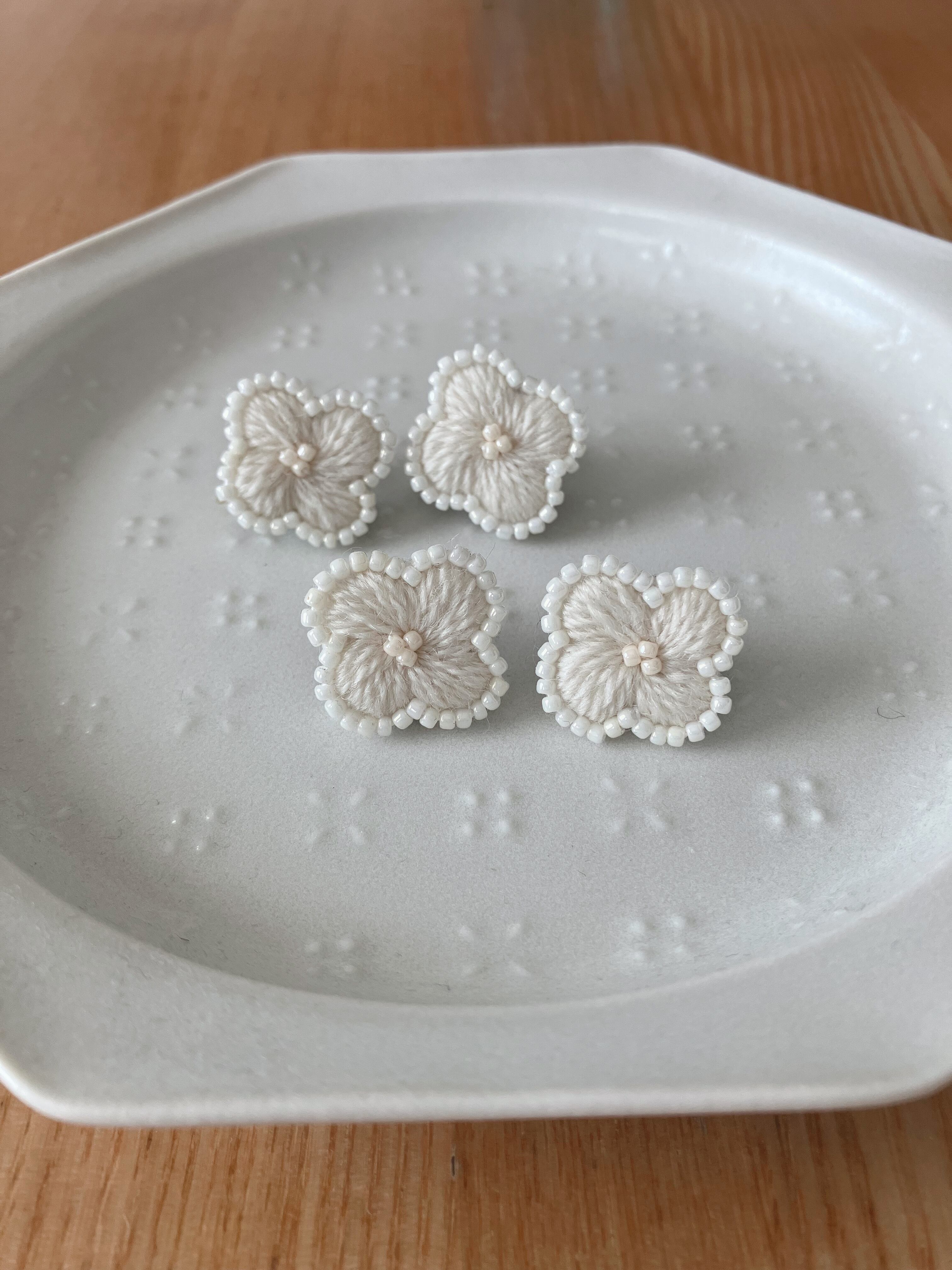 やわらかなウール糸 お花のイヤーアクセサリー